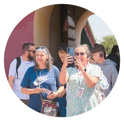 5月1日,來自澳大利亞的游客在北京天壇公園游覽。新華社記者 鞠煥宗攝