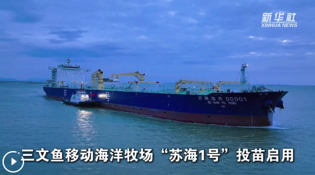 23日,全球首艘自航封閉式三文魚養殖工船“蘇海1號”在江蘇連云港贛榆區投苗啟用。“蘇海1號”是一型集養殖、捕撈和加工高價值魚種功能于一體的海上智能養殖裝備,船長249.8米,養殖水體達8.3萬立方米,在穩定運營后,該船可實現三文魚年養殖量超8000噸。