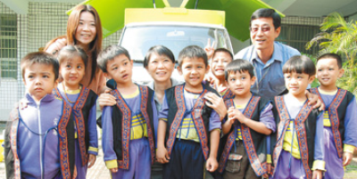 周美青昨天走訪屏東縣偏僻鄉鎮的小學時,跟小朋友們的合影。(圖片來源于:臺灣《聯合報》)