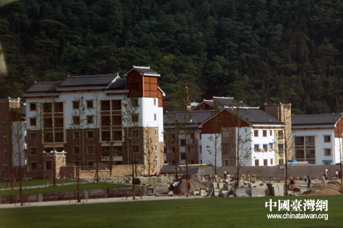 駛出北川老縣城遺址,路邊隨即展現的簇新羌族民居。(中國臺灣網 楊麗 攝)