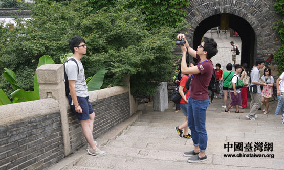 組長張壹翔為組員董柏廷拍照。(中國臺灣網 李丹 攝)