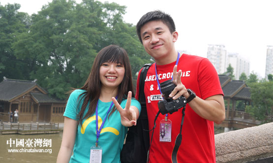 臺灣成功大學的劉韋億(男)與第二組組長林永恩(女)合影。(中國臺灣網 李丹 攝)