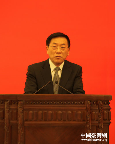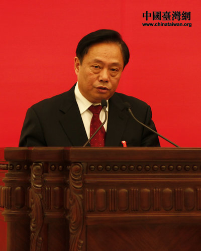 中華全國臺灣同胞聯(lián)誼會會長梁國揚(yáng)代表全國臺聯(lián)第八屆理事會作工作報(bào)告。(中國臺灣網(wǎng) 郭瑩瑩 攝)