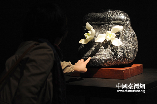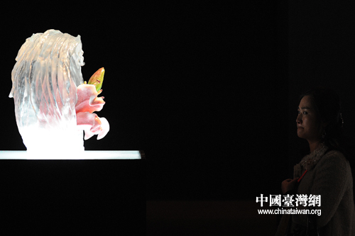 4月23日,中國美術館,《琉璃之人間探索——楊惠姍、張毅聯展》,觀眾不禁伸手感觸出神入化的琉璃作品。 (中國臺灣網 田云鵬 攝)