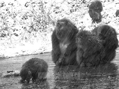 這是猴群和孫大爺在龍池景區度過的第三個寒冬。據孫大爺介紹,2002年以前,猴子們的日子十分好過,“那是它們最幸福的日子”。但2004年“五一”大假后,景區游人急劇減少,猴群開始進入饑荒時代,不得不靠吃草根和啃樹皮來填飽肚子。食物豐盛的春季和碩果累累的夏秋季倒是難不倒這群野性十足的“齊天大圣”們,可漫長的冬季就難過了。猴子們手腳都凍木了,才勉強刨出幾根可以果腹的野草根。“山娃 (孫大爺對猴子的昵稱)啊,我也沒辦法,只有這么多糧食給你們,你們要是餓得慌,就去找鎮領導反映吧。”孫大爺在和猴群的前“國王”、現在的二猴王聊天時半開玩笑地說。“哦-啊”,聰明的二猴王似乎懂起了孫大爺連比帶劃要表達的意思。