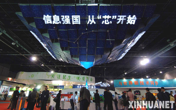 10月9日,參觀者在觀看展覽。當日,“創新之路——中關村科技園區成立20周年成就展”在北京國家會議中心舉行。展覽通過圖片、實物展示等方式,回顧中關村輝煌的發展歷程,展示中關村20年來矚目的成就、前沿的創新成果以及嶄新的園區面貌。 新華社記者 公磊 攝