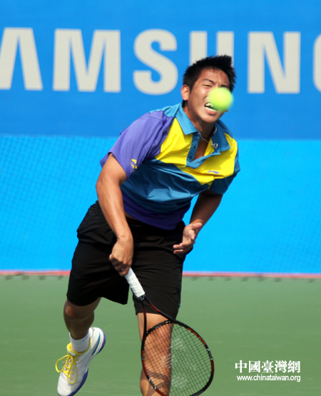 楊宗樺奮力發球。(中國臺灣網 鐘寶華 攝)