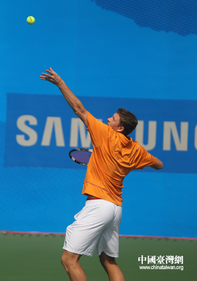 烏茲別克斯坦選手陣丹尼斯·伊斯托明發球。(中國臺灣網 鐘寶華 攝)