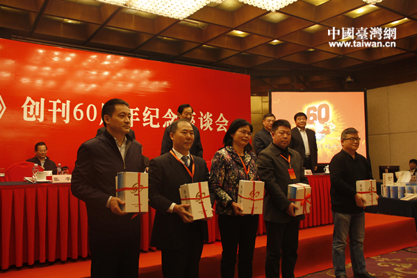 在座談會上,團結報社舉行了“《團結報》60年及系列紀念文叢”首發儀式。(中國臺灣網 王亞靜 攝)