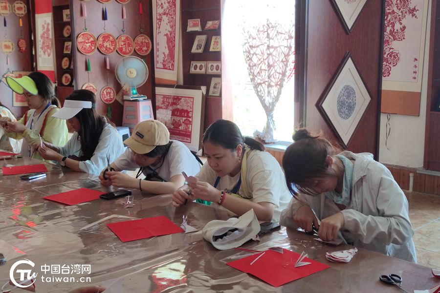 臺灣青年們聚精會神學習剪紙。(中國臺灣網 高嘉鴻 攝)