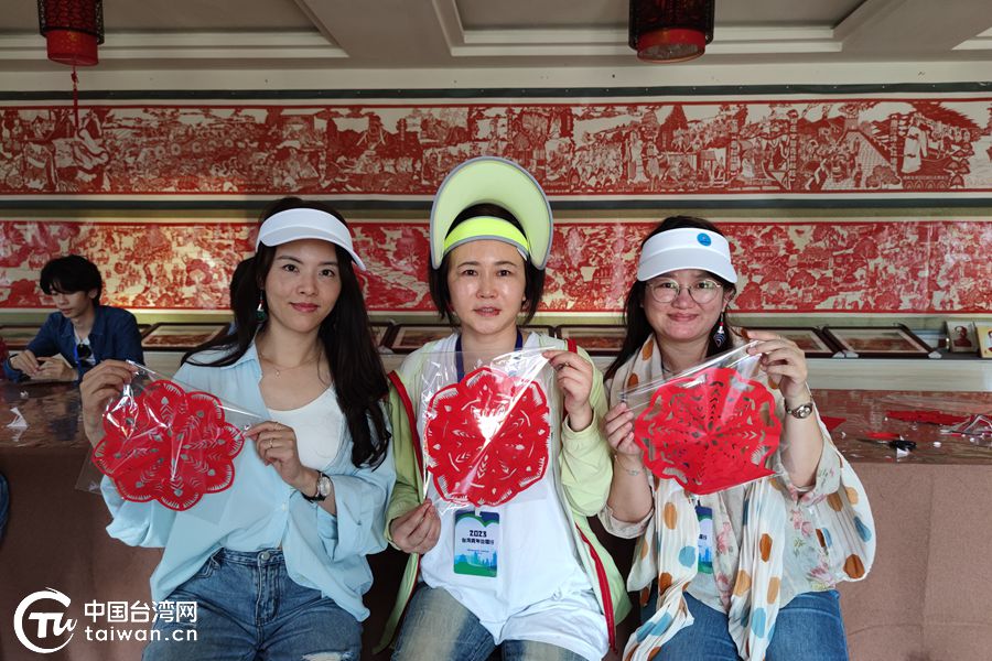 臺灣青年們整齊地坐在長桌兩旁,開始學習基礎剪紙工藝。手起剪刀落,趙阿姨一邊講、一邊剪,一張精致的紙花便映入眼簾。