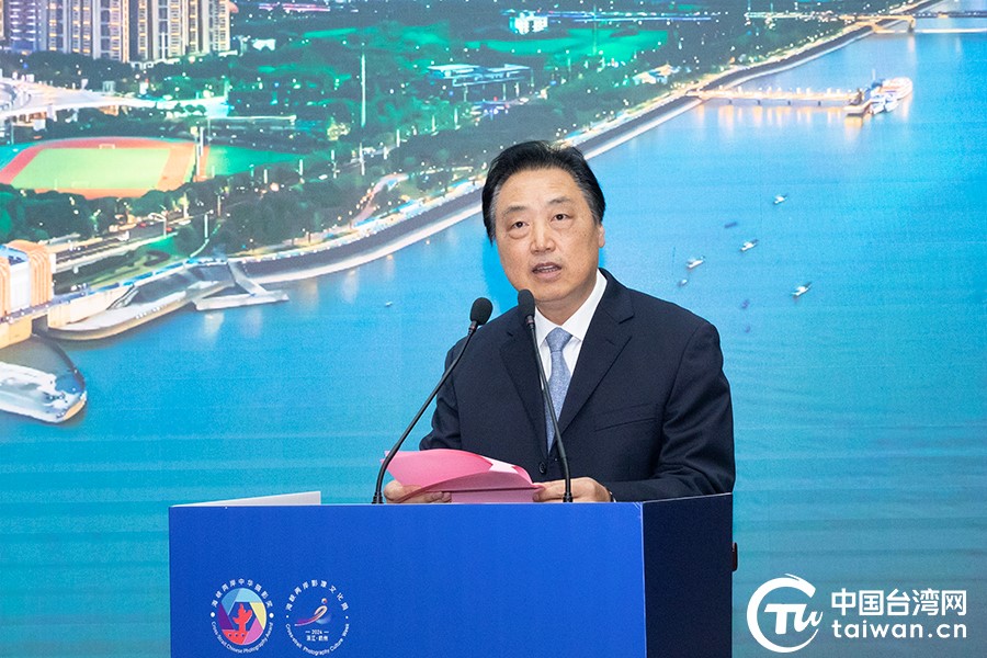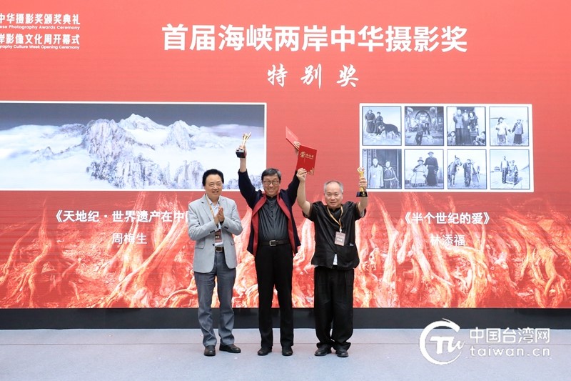 莊躍成為首屆海峽兩岸中華攝影獎特別獎獲得者頒獎。(中國臺灣網 尹賽楠 攝)