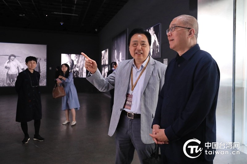 莊躍成向中國文聯副主席許江介紹首屆海峽兩岸中華攝影獎參展作品。(中國臺灣網 尹賽楠 攝)