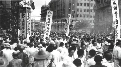 1945年10月25日,中國戰區臺灣省受降儀式在臺北舉行,日本駐臺總督安藤利吉在臺北公會堂內向中國臺灣省行政長官陳儀呈交降書、繳械投降,臺灣、澎湖列島重歸中國主權管轄,再也不是日本殖民地。“臺北40余萬市民……老幼俱易新裝,家家遍懸彩燈,相逢道賀,如迎新歲,鞭炮鑼鼓之聲,響徹云霄,獅龍遍舞于全市,途為之塞。”“家家戶戶,無比歡欣,祭祖謝神,向先民冥中告知臺灣已回歸祖國。”10月25日這一天,也在1946年被確定為“光復節”,成為臺灣民眾舉家歡慶的歡樂節日。