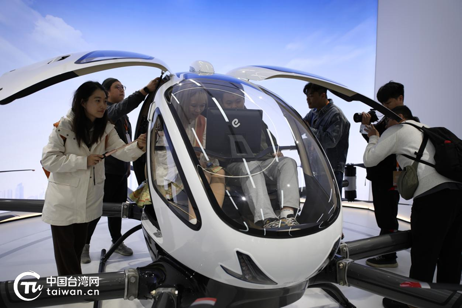 兩岸媒體記者參觀體驗億航智能EH216-S無人駕駛載人航空器。(中國臺灣網記者 劉棟 攝)