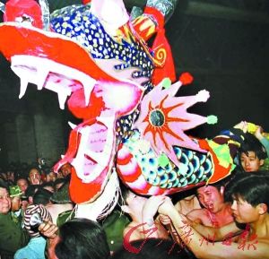 龍年看龍:陽山縣嶺背鎮每年在春節期間,就是自發組織舞火龍。整條火龍的長度大約為10米,編織好之后就放在鎮里的關帝廟。現在,起龍的時間為年初四開始,連續上演三天。一到晚上的7時左右,嶺背鎮的關帝廟都會人山人海,由舞龍隊的帶頭人開始進行拜祭儀式,而后就開始起龍,從鎮山的大街一直游行到每條小巷。家家戶戶準備好鞭炮,進行火龍游行中最精彩的“炸龍”,據說每年那家那戶的“炸龍”最火爆,那家人的生活就會吉星高照、喜事連連。火龍游行一般都在晚上的11時左右結束,在結束游行之后,都會返回關帝廟。由帶頭人再高呼“風調雨順”、“國泰民安”的祈禱聲中,將火龍送入江中,完成今年的火龍儀式。
