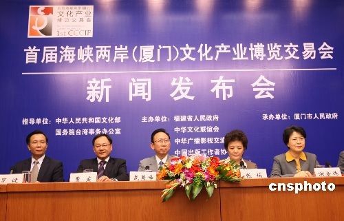 十月二十七日,福建省人民政府新聞發(fā)言人在國(guó)務(wù)院新聞辦舉行的新聞發(fā)布會(huì)上宣布:首屆海峽兩岸文化產(chǎn)業(yè)博覽交易會(huì)將于十一月二十七日至三十日將在廈門舉行;顒(dòng)由博覽交易、高峰論壇和配套活動(dòng)組成,以“一脈傳承、創(chuàng)意未來”為主題的文博會(huì),努力打造兩岸文化產(chǎn)品博覽、交流、合作、交易和研討于一體的品牌,促進(jìn)兩岸文化產(chǎn)業(yè)的交流與發(fā)展。 中新社發(fā) 史利 攝