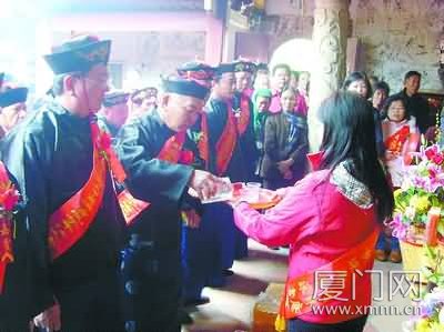 2月27日,臺灣臺南仁德鄉大甲慈濟宮近百名信眾來到廈門灌口深青深澤宮尋根進香。臺南縣的許先生告訴我們:在臺灣保生大帝擁有非常廣泛的信眾,在當地,父輩們世代相傳仁德鄉的保生大帝信仰是從深青深澤宮分靈過去的,為了找到祖地,他們費盡了周折,因此這次進香,顯得非常隆重,提前幾個月就進行了籌備。為了秉承中華民族的文化傳統,他們特地為一些主要人員趕制了一整套的中國古代服裝,以配合祭典的氛圍,而且還特制了到祖國大陸進香的專用旗幟。臺灣的蘇先生還告訴我們,由于這次進香趕不上春節包機,近百號的人只得到香港轉機。路途繞了一大圈,但這一點說明了大家對祖地的向往,同時也盼望能早日三通。