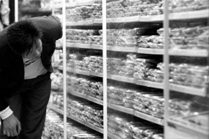 世博軸(網(wǎng)上世博軸)下的羅森超市三個(gè)冰柜內(nèi)放滿各式快餐,方便游客選購。 世博記者 殷立勤 現(xiàn)場圖片
