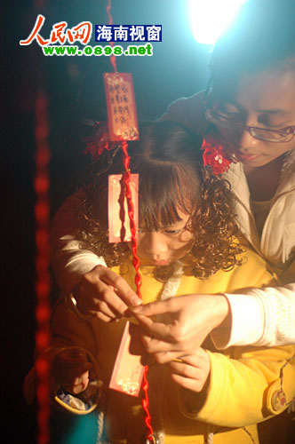 在海瑞故居的兩棵榕樹下,市民許愿祈福活動更是熱鬧,市民紛紛把新年愿望寫在卡片上,系上紅繩綁在榕樹下,祈求新的一年平安吉祥、順順利利。此外,當晚的紅城湖廟會也人潮涌動、熱鬧非凡,燈展、游園、卡拉OK、木偶戲、傳統小吃、瓊劇票友演唱會等讓市民們興致濃濃。