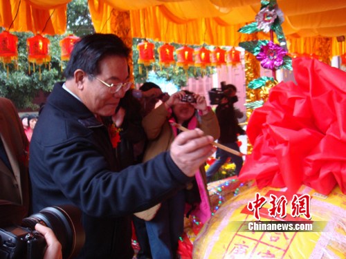 中新網泉州2月17日電 (林永傳 郭斌)正月十五元宵節,一年一度的“泉澎乞龜民俗文化活動”在福建泉州天后宮隆重舉行。澎湖地區兩岸交流協會理事長林炳坤、澎湖縣縣長王乾發等澎湖嘉賓特意從澎湖趕到泉州參加此次活動。
