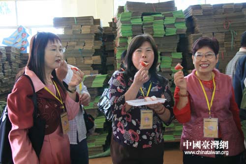 來自臺南縣的記者品嘗黃益豐農場里出產的蓮霧贊不絕口(李杰 攝)