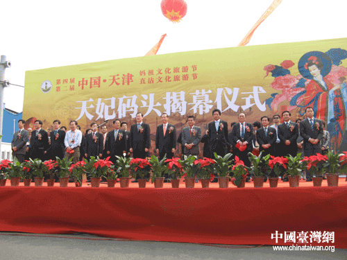 中國臺灣網10月4日消息 在第四屆天津媽祖旅游節的開幕式演出結束后,來賓和各界代表乘船并進行媽祖海河出巡活動,在河東區天妃碼頭舉行揭幕儀式,并在河東區天妃宮前廣場舉行迎駕媽祖、踩街和民俗表演等活動。(李典典 石慧)