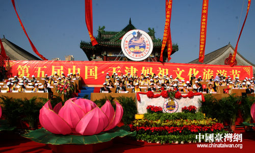天津市委常委、宣傳部長肖懷遠與中國國民黨中常委朱鳳芝共同為第五屆中國天津媽祖文化旅游節啟幕(中國臺灣網 王曉蕊 攝)